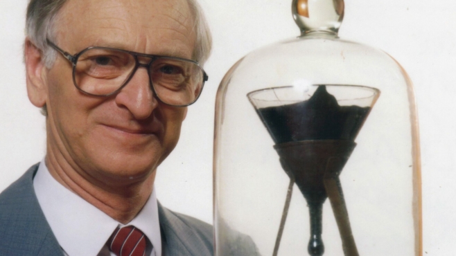 يک دهه پس از آنکه پرفسور توماس پارنل از دانشگاه کمبريج اين فرآيند را آغاز کرد، يکي ازهشت قطره فرو افتاد.اين مايع چسبنده به حرکت بسيار آرام اما مداوم خود به سمت پائين ادامه داده و در سال ۱۹۴۷ دومين قطره به پائين سقوط کرد.